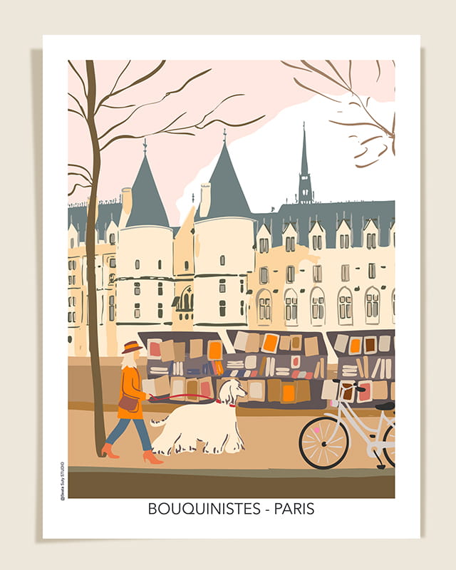 Affiche déco – art mural au style moderne, mettant en scène ma promenade favorite le long de la Seine, au cœur de Paris.